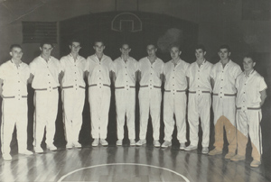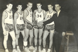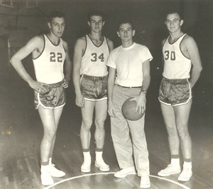 The back line of ‘59 consisted of 6’1 forward Charles Brewer, 6’1forward Johnny Narramore, and 6’4 center Alva Moore.