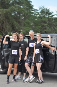 The Roberson family prepare for the 2-mile walk and the 5K run.